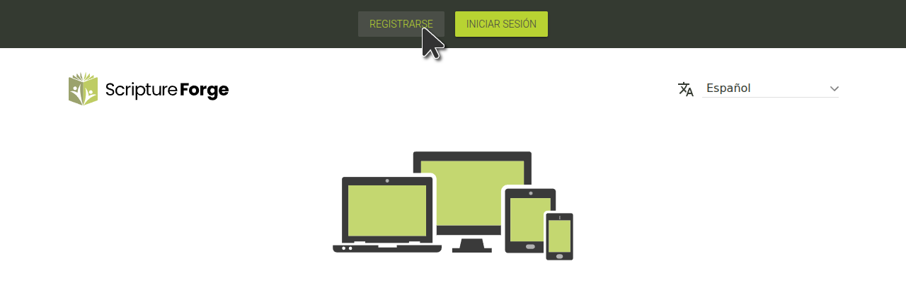 - Si ya tiene un registro de Paratext (o ha creado una cuenta de Scripture Forge), haga clic en el botón Iniciar sesión. De lo contrario, haga clic en el botón Inscribirse.