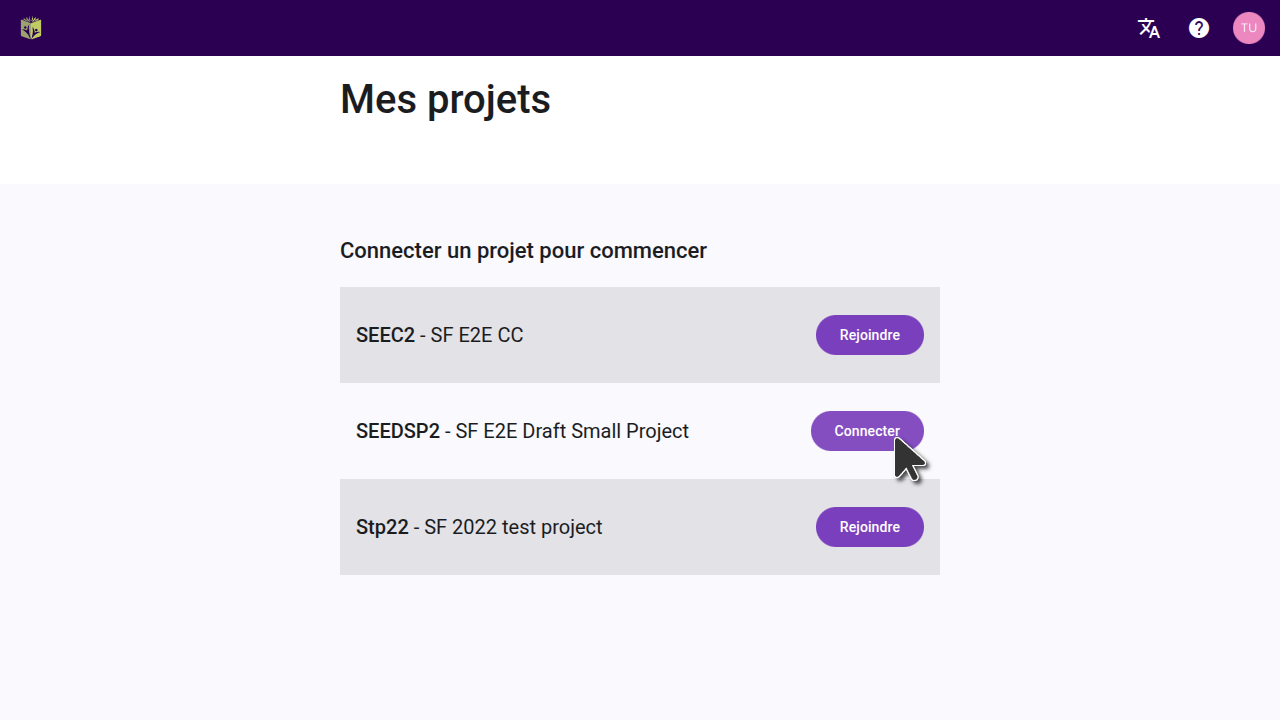 To connect a Paratext project in Scripture Forge, log in with Paratext. When you log in, the My projects page will load. If you are on a different page in Scripture Forge you can get to the My projects page by clicking the Scripture Forge logo in the top-left corner of the page. The My projects page lists all projects you are a member of in Paratext, including those that are connected to Scripture Forge, and those that are not yet connected. If a project has already been connected and you are a member of the Paratext project, you can join the Scripture Forge project by clicking Join. If the project hasn't been connected yet, and you are an admin of the project, click Connect. Only admins can connect a project on this page.