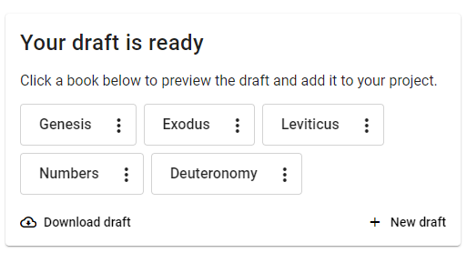 Scripture Forge adalah alat yang dirancang untuk membantu Anda menavigasi fase pembuatan konsep dengan lebih efektif dan cepat dengan tetap menjaga kualitas pekerjaan Anda. It is not a replacement for the translation steps. Instead, think of it as a resource to help you be more productive while drafting and community checking.